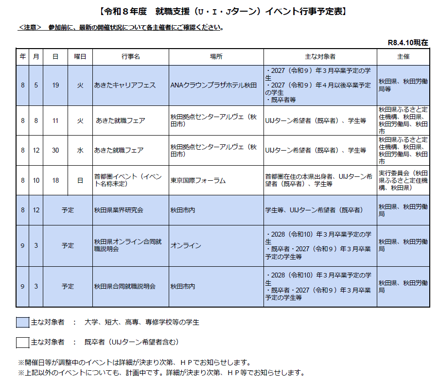 秋田県主催の就職支援(U・I・Jターン)イベント情報